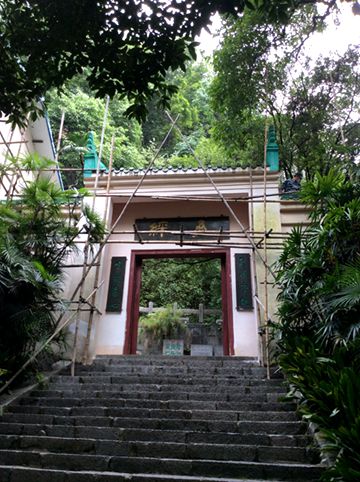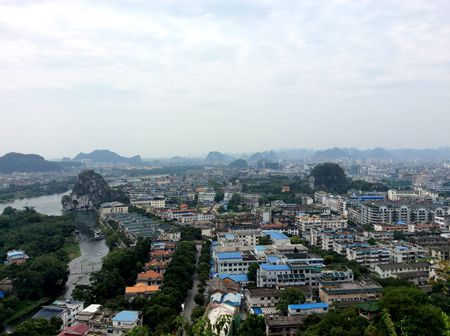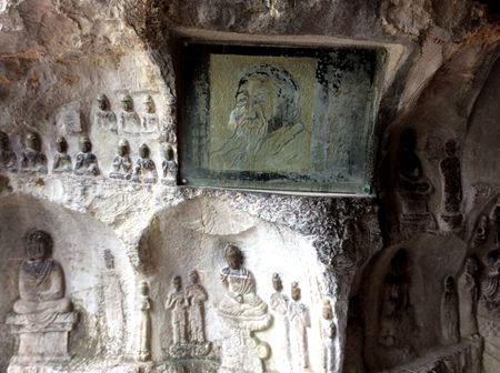 明月峰は海抜223mで、山の高さは73mです。階段は450段ぐらいあり、頂上までゆっくりして、約一時間ぐらいかかりました。半ばの風洞を年中川風が吹き通っていて、たいへん涼しかったです。そこに唐代以来の仏像が多くあり、民国の有名な教育家の馬相伯先生の肖像も刻まれています。頂上まで登ると市内の景色が一見見下ろすことができ、登り甲斐がありました。