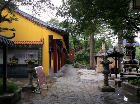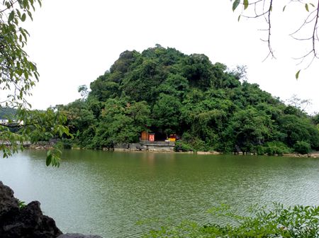 池の向こう側に濃い緑に覆われて、見えつ隠れつする小山があり、それは隱山といいます。九曲橋を歩いて、対岸の隱山に渡ると、隱山六洞の見物ができます。隱山にはつながった洞窟が十数あり、唐代の李渤が開発した北牗洞、朝陽洞、白雀洞、嘉蓮洞、南華洞、夕陽洞の六つの洞窟は有名で、隱山六洞と言います。近くには華盖庵と法蔵禅寺があり,普段は静かですが、旧暦の1日と15日には線香を焚く参拝者でいっぱいになります。