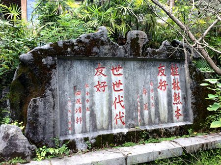 桂林は日本の熊本市とは有効姉妹都市で、公園の中には日本の民居式の建物があります。それは1990年の10月に姉妹都市の熊本市の出資で建てられた桂林熊本友誼館です。1988年私は交換留学生として、日本に派遣されて、熊本大学に一年間留学しました。光陰矢のごどし。あっという間に28年が過ぎて、20代の大卒が白髪だらけの50代のおじさんになってしまいました。熊本の皆さんはお元気でしょうか。あのユニークな桂林熊本友誼館も改装され、前の様子とだいぶ変わりましたが、「世世代代友好」の石刻だけが昔のままで変わりませんでした。