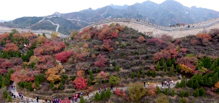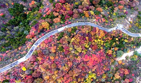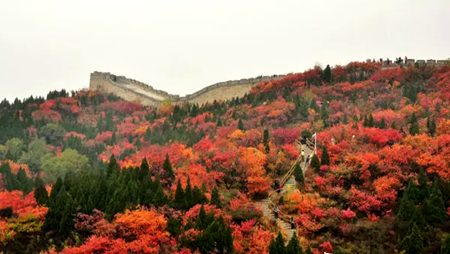 10月23日は24節気の霜降で、北京八達嶺長城と八達嶺国家森林公園では紅葉の鑑賞する時季紅葉にを迎えました。(新華社より)