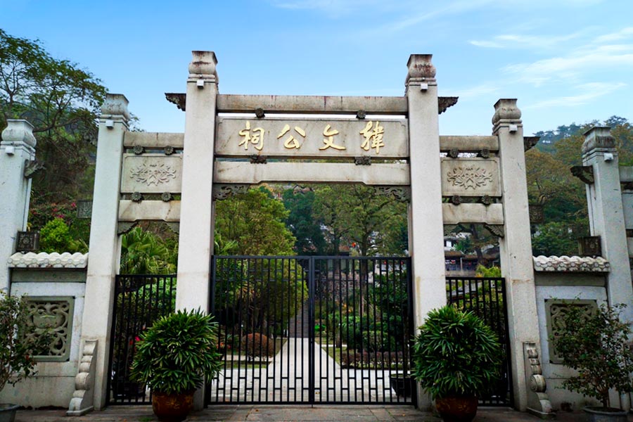 韓文公祠は広東省潮州市の東面の韓江の東岸、筆架山の中峰「双旌石」の下に位置しています。筆架山は韓愈のため韓山とも呼ばれます。韓愈は唐代中期の官吏、文学者、思想家、哲学者、政治家です。韓文公祠は中国で現存している韓愈を記念する祠です。韓祠の主体建築は前後二進に分かれています。祠の中の梁間に名家が書いた額をくまなく掛け、壁に沿い、歴代の碑文40面をループしています。韓祠の歴史と韓愈治潮の業績と韓祠をたたえる詩文が記載されています。その中には書法の貴重品や文史を研究する貴重な資料がたくさんあります。
