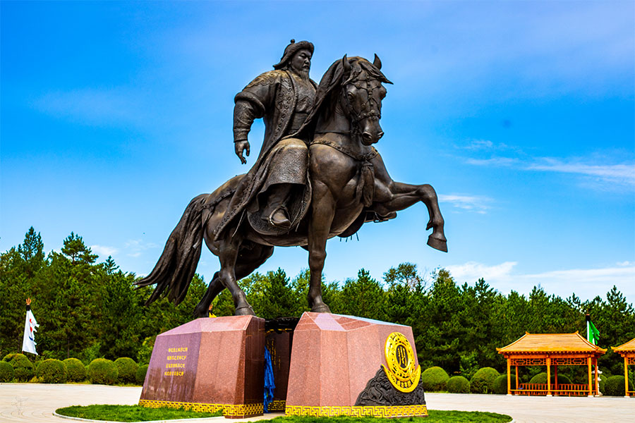 古代モンゴル族の領袖、軍事家、政治家であるチンギスハンの陵墓、チンギスハンの偉大功績を讃える「●チンギスハン陵園」を観光。