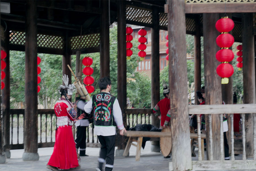 「中国最も美しい六つの郷村古鎮」に入選されて「トン族の第一寨」の美名もある●肇兴侗寨観光、トン族村のシンボル建築◎鼓楼見学、到着時間によってトン族の歓迎式や民族ショーの鑑賞も可能です。