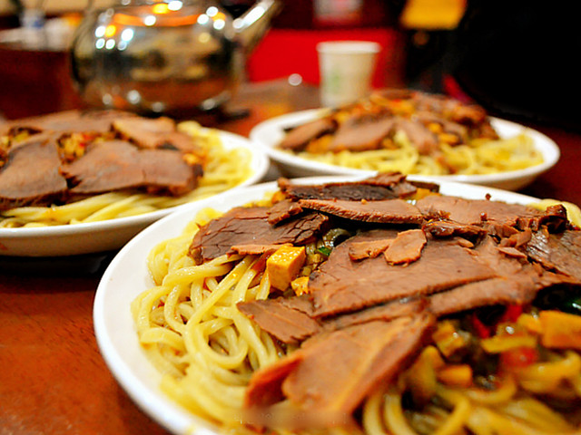 敦煌の黄麺は「龍のひげのように細く、金線のように長く、食べると香りが口に広がる」と人気を集めます。麺は歯ごたえがあり、ロバの肉は美味しいのです。