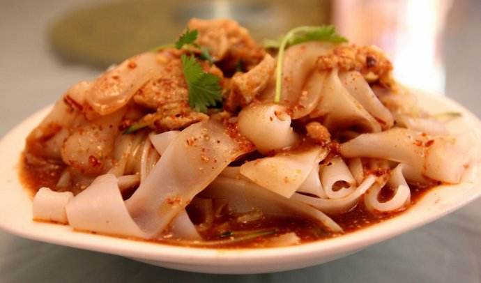 小麦粉の漿汁で蒸した麺の皮で、柔らかく、酸っぱくておいしいのです。醸皮は1000年以上に渡って伝えてきた美食であり、莫高窟蔵経洞書文の記録によると、唐の時代、敦煌の醸皮はすでに市場で売れている美食です。