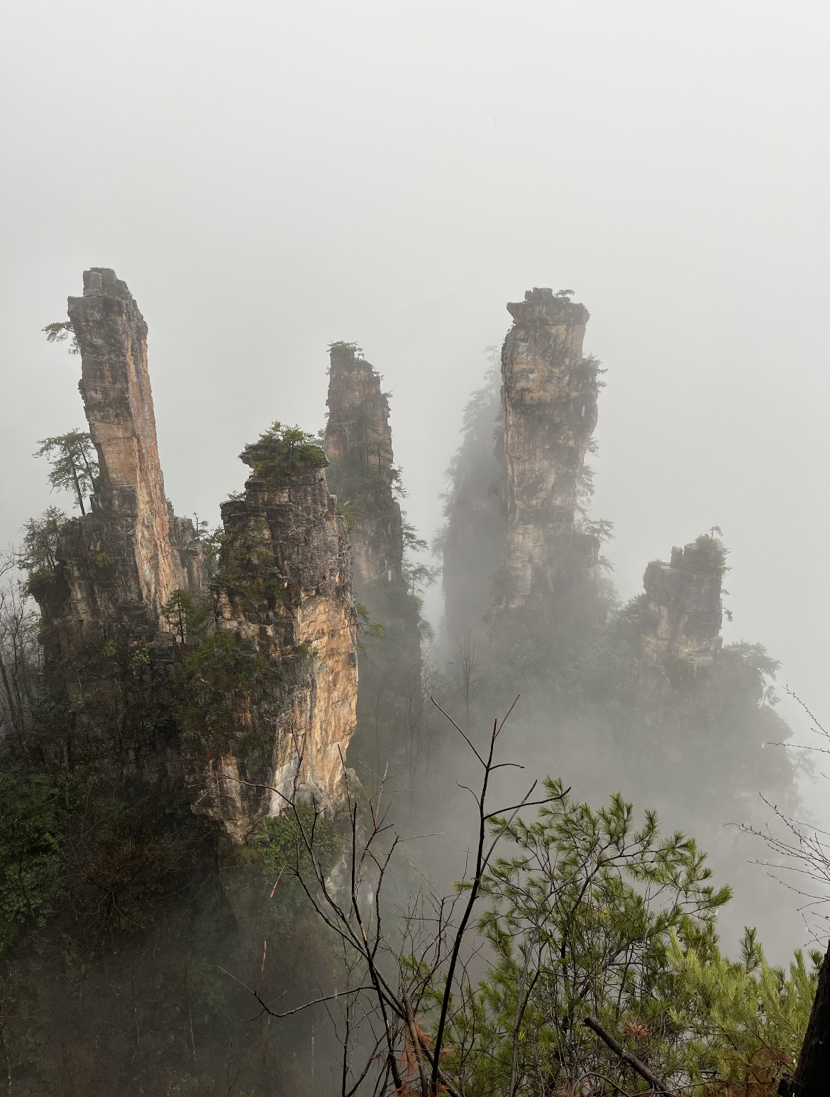 武陵源は曇りでしたが、下からの景色は問題なし、上からの景色は霧が晴れる瞬間が神秘的でした。