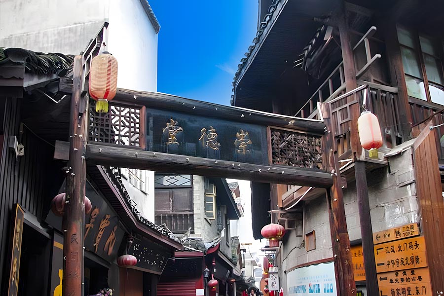 家主は昔の鳳凰の筆頭の富である裴 守禄で、祖籍は中国江西省ですが、避難で先祖は鳳凰に来ており、小さい商売から有名な「裴三号」商号に発展していました。この崇徳堂が建てられ、全中国から収集されていた貴重物を展示しています。建物の一階は石彫展示室、木の彫刻展示室とリビング室、レストランとガーデンなどがオープンしています(二階は寝室なので、現在は不公開になっています)。一番有名な展示品は様々な額だと言われていますが、中国の伝統な孝、徳など美しい品格を表示しています。
