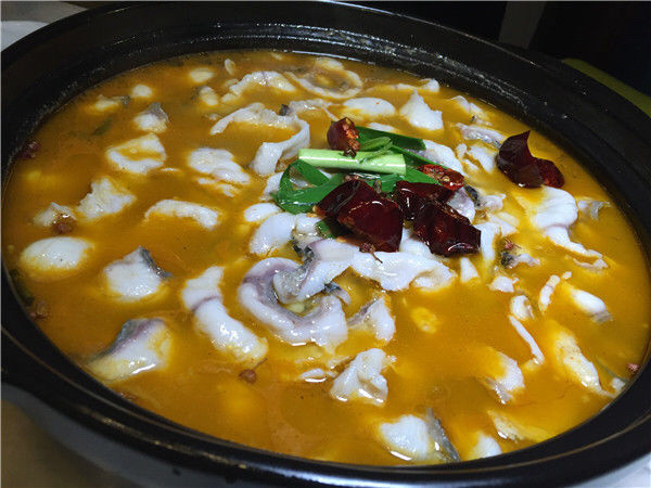 新鮮な魚を水洗いして、内臓を切って、酸っぱい壇に置いて、唐辛子粉と塩を振って、ショウガ、ニンニク、スパイスとよく混ぜ合わせて、三日経ってから壇の中の魚を取り出して、酸っぱい壇の底にモチ米をのせます。魚肉と唐辛子を加えて酸辛スープにすると、味が鮮やかであっさりします。