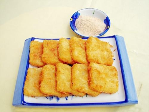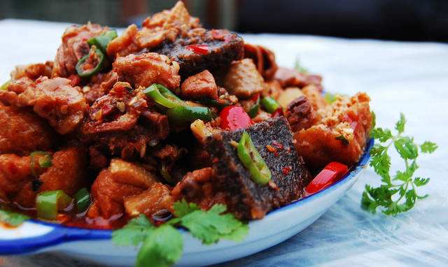 アヒルを殺す時、もち米の中にアヒルの血を入れ、血が凝固すると蒸して炒めます。表面は硬くて脆いが、中ではもちもちです。
