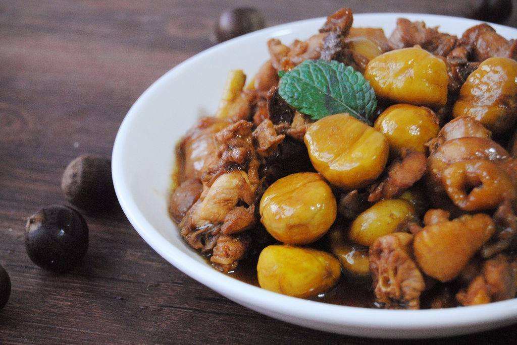 鳳凰特産の烏油栗と烏鶏で作られます。鶏肉は角切りにし、烏油栗を煮た後、炒めた鶏肉を和えて煮込みます。栗と鶏肉の香りはとても魅力的です。