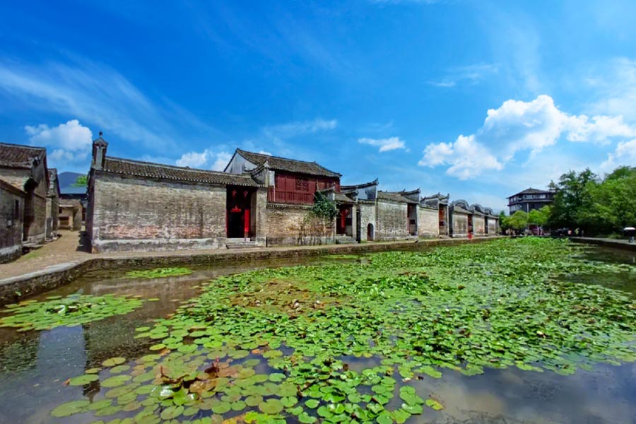 村内には古民家、井戸、祠堂、、横町、橋梁、古墳、廟宇、仏堂、横額などがあります。特に古民家の数が多いです。現在、村には約700人の人が住んでいて、そのうち90%の人が「周」の苗字を名乗っています。住んでいる人のほとんどが、宋の時代の有名な文学者「周敦頤」の後裔だからです。彼の代表作の一つ『愛蓮説』は中国の人々によく知られています。「愛蓮文化」は主に、「誠意を持って他人に接する、善行を積む、無私に貢献する」という考え方を標榜しています。村では「愛蓮文化」の薫陶を受けて勉学が盛んになりました。明清時代には厳しい登用試験に合格し、官職につく人が160人以上にも上りました。