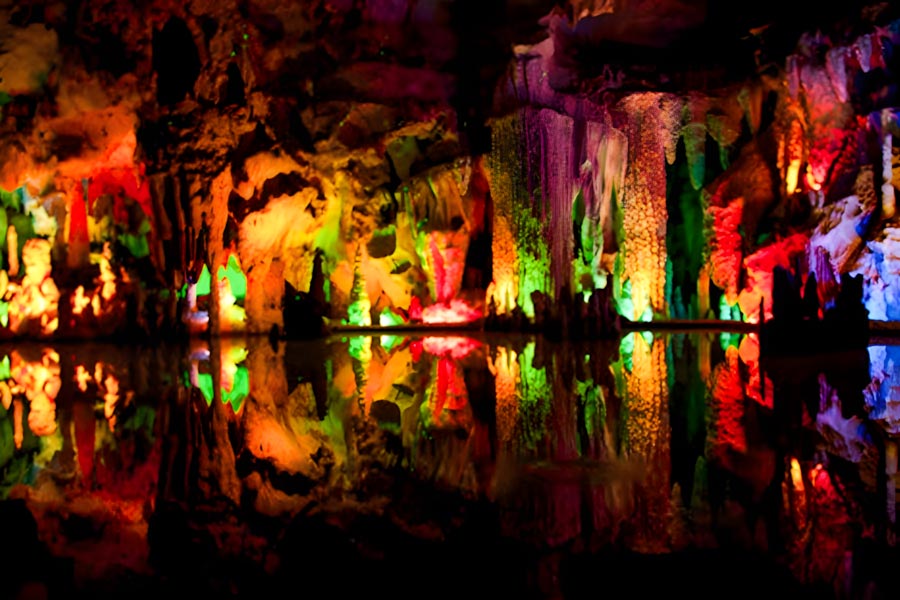 ヒント:聚龍潭は陽朔の境界内にある唯一水陸遊覧できる鐘乳洞で、約1キロの遊覧コースでは約四分の一のコースは乗船して見学できる。それに水路の側で桟道が作られ、徒歩見学もできる。水路コース、陸路コースどちらにするかはお気持ち次第。