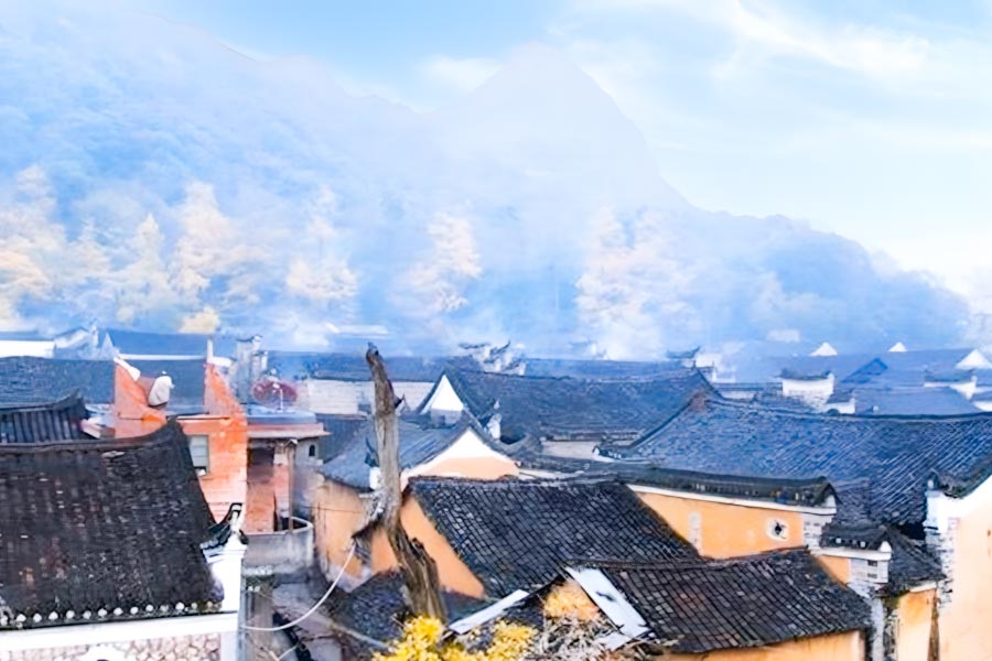 秦家大院は、桂林市から車で1時間半ほどの白石郷水源頭村にあります。周りは山に囲まれ、山の上には銀杏の木がうっそうと茂っています。秦家大院は一軒の邸宅を指すのではなく、敷地面積17,000㎡、7つの巷と8組の邸宅30棟からなる邸宅群です。秦家大院は中国における古い村落200選にあげられています。