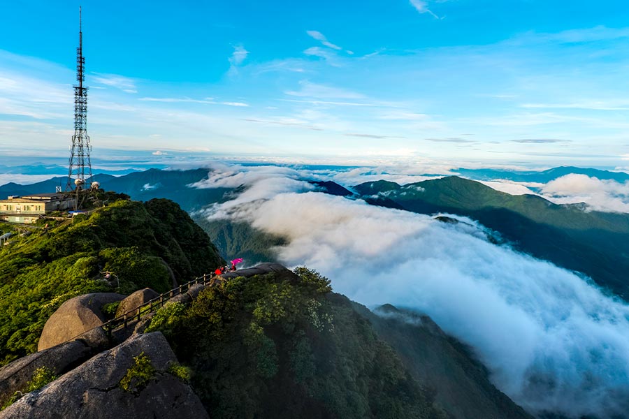 猫児山は桂林市内から122kmの場所に位置し、興安、資源、龍勝の三県を跨ぎ、標高2142mは広西チワン族自治区最高峰、華南地方最高峰としても知られています。山頂がまるでうずくまる猫のように見えることから猫児山と呼ばれ、「泰山の雄、華山の険、蘆山の幽、峨嵋山の秀」と称され中国各地の名山の特質を併せ持つと言われています。猫児山では高度が上がるにつれ気温が下がるため、高度によって植物が異なる生態を示しています。標高別に400~1200m間には常緑広葉林と常緑針葉林が広範囲に広がり、1200~1800m間には落葉林と常緑広葉林の混成林が生い茂っています。1800~2000m間には常緑広葉林に加え、常緑広葉林と針葉林の混成林が広い範囲に分布しています。2000m以上になると低い灌木の生える高山地帯になります。地元政府は1993年より猫児山の観光開発に力を入れ、ツツジ園、ツガ公園、老山界、高山公園、十里峡谷など6つの観光区域と26の観光スポットを備え、4200㎡の広大なリゾート施設と160kwの水力発電所を建設しました。1999年には中国生物保護圏のネットワークに登録され、主な保護対象として原生林の亜熱帯常緑広葉樹を構成する森林生態系、国に保護されている動物や植物の種子及び離江の水源涵養林です。