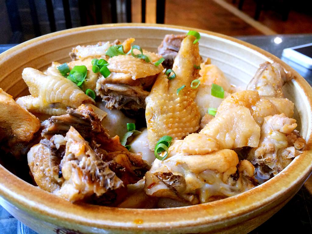 桂林の地鶏を使い、角切りにした鶏肉を水煮した後、栗や香辛料、醤油、塩、にんにくと一緒に鍋でしっかり煮込みます。出来上がった鶏肉が栗の澱粉によって非常に柔らかくなり、スープの旨みが肉に浸み込み、見た目も味も最高の一品です。