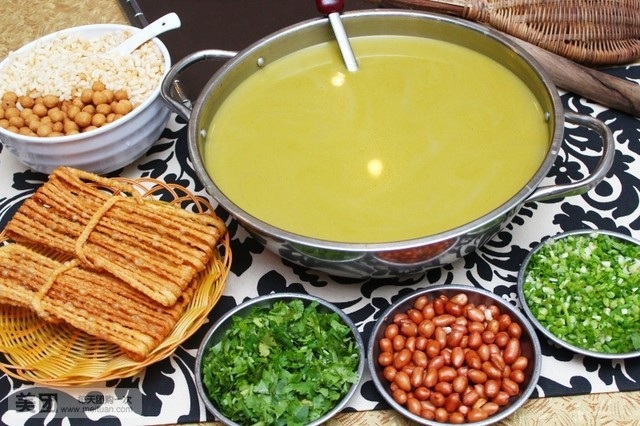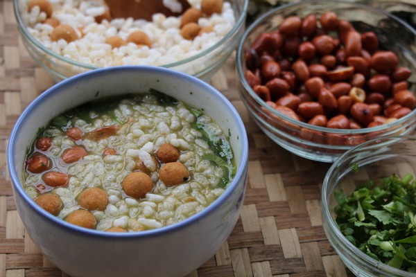桂林市恭城県の恭城油茶は毎年清明節穀雨の季節に摘み取った茶っぱを5~10分程お湯に浸しアク抜きし、鍋に油、生姜、葱を入れて一緒に炒めます。それからお湯の中に入れ、味が出るまで擂り潰しながら煮ます。その後、塩を加え、茶っぱを出しお茶の湯だけを残します。最後に、葱、ワケギ、コリアンダー、米花、揚げピーナッツなどを入れて飲みます。香りも味も良いこの恭城油茶は桂林の人々に大変好まれています。