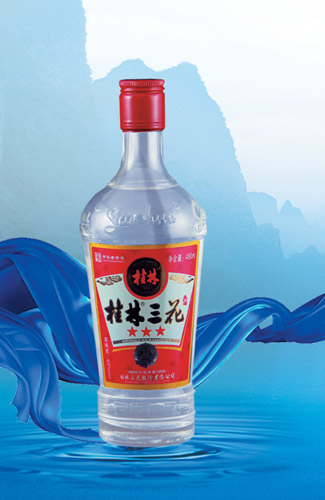 まず、三花酒は中国の米原料の代表的お酒で、特に漓江の側にある象鼻山の下から汲みとった美味しい地下水を利用し、伝統技術を駆使し三回にわたり醸造しており、口触りが爽やかな上、後味も良く、昔から有名になり、お酒の愛好家に高く評価されています。アルコール度数が53度と28度の二種類に分かれています。