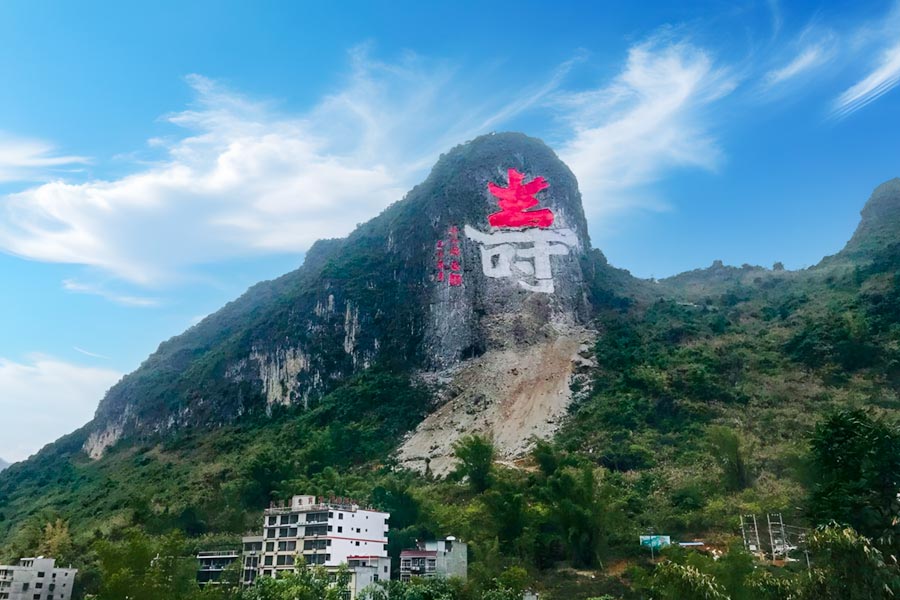 河池市は金城江とも言い、山の中にある町です。広西チワン族自治区の北西部、雲貴高原の南麓、東経106°34'~109°09'北緯106°34'~109°09'に位しています。東は柳州市、南は南寧市、西は百色市、北は貴州省の黔南プイ族苗族自治州に接しています。東西の長さは228キロ、南北の幅は260キロ、総面積は3.35万平方キロあります。黔桂鉄道は市内を通っています。一番大きい川である紅水河は町を流れています。