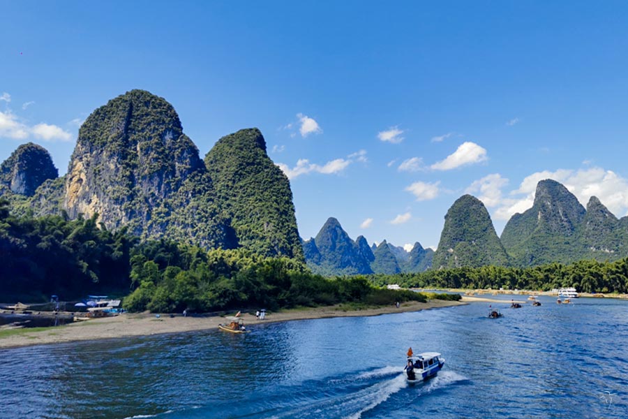 朝食後、専用車にて船乗り場へご案内(約30km、約40分) 山水画の世界▲ 漓江 下り観光(53km、約4時間) 船内にて景観を楽しみながらご昼食、陽朔にて下船し、欧米人に人気の「◎陽朔西街」散策へご案内。観光後、専用車にて桂林市内に戻ります(約65km、1時間半) 夜又は夕刻、飛行機にて桂林から香港へ