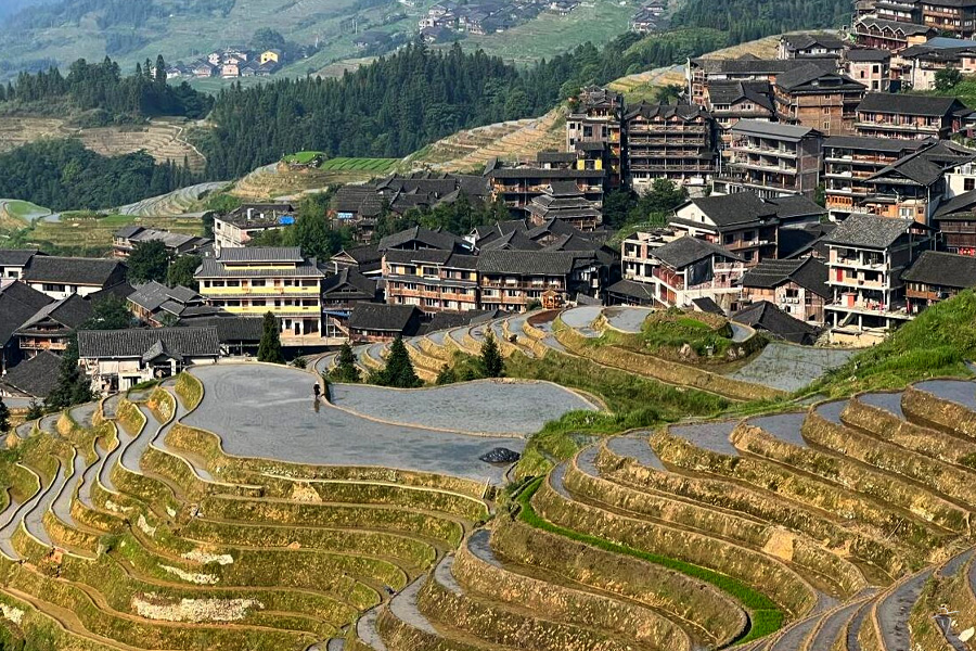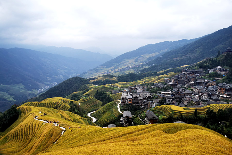 朝食後、専用車にて龍勝へご案内(約110km、2時間半) 「◎黄洛瑶寨長髪村」見学へご案内、● 龍脊棚田 ハイキング(ジャリ道や階段が多いので、スニーカーなど歩きやすい靴をご用意下さい)をお楽しみください その後、桂林へご移動(約110km、2時間半)