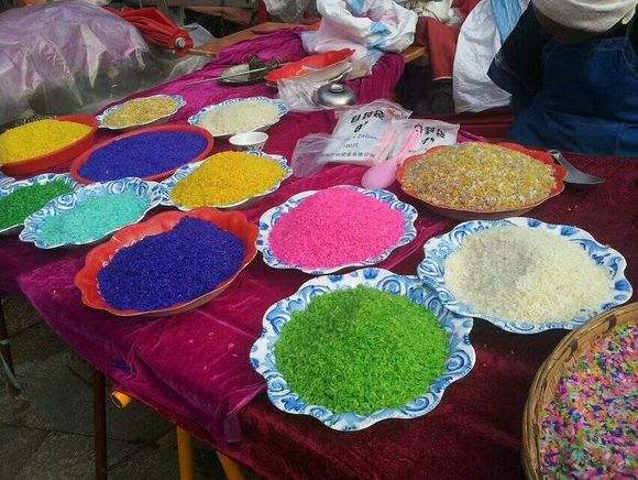 色は緑、黄色、赤、黒など多様です。世界的にも珍しい米の品種で、栄養価値が高いのです。セレンを多く含み、人体の免疫力を高めます。