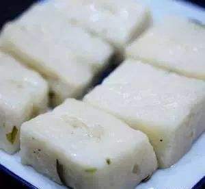 伝統的なもち類の美食で、ラードもちから発展してきたものです。清代にすでに有名で、『元和唯亭志』では「呉中佳制」と称しています。真っ白できらきらし、もちもちしていて、口に入れても飽きません。