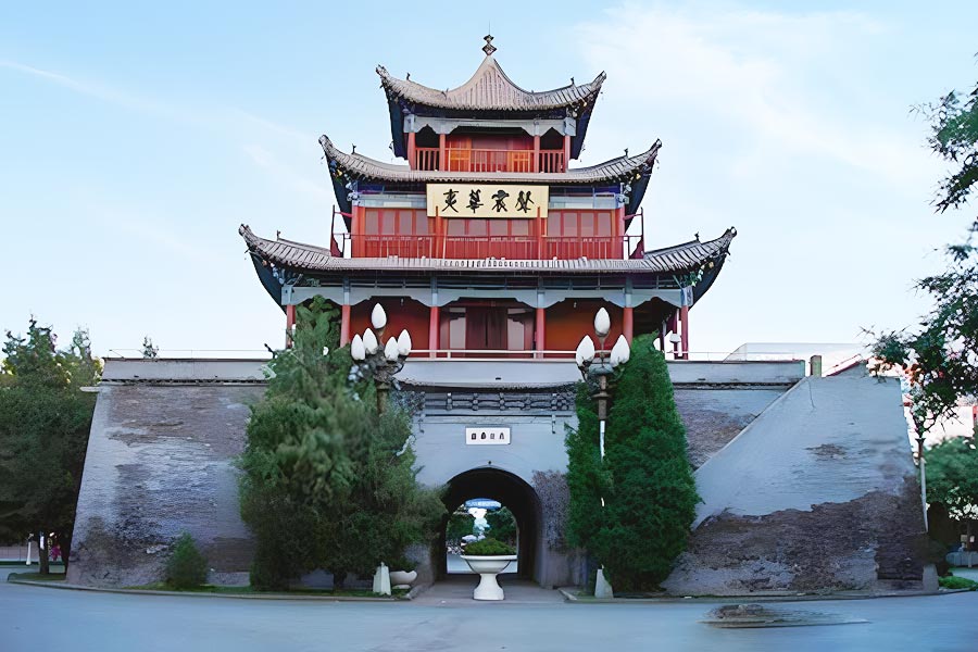 346年の建造で、清代に再建されている。東西南北に4つの門があり、すぐ上に「東に華岳を迎え/西は伊吾に達し/南は祁蓮を望み/北は砂漠に通す」の文字を掲げている。