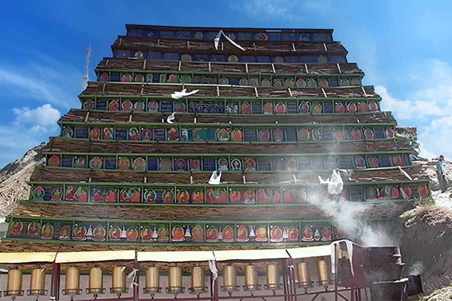薬王山の東側には洞窟式の小さな廟宇があり、タラルグ寺(查拉鲁普寺)と呼ばれます。洞窟はソンツェン・ガムポ王時代に開削され、頂上の崖は文成姫が故郷を慕り、東方向に向かって参詣した場所と言われています。千年以上の月日が流れた現在でも、この廟宇は完全に保存されています。
