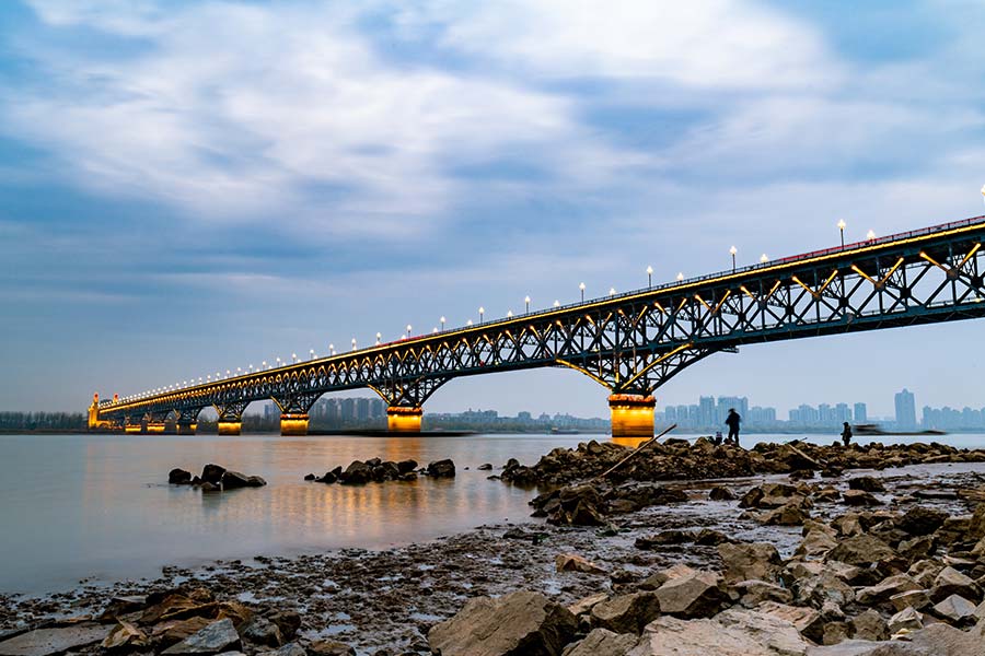南京長江大橋は、武漢、重慶に続いて、中国で3番目に造られた長江に架けられた橋で、上段が道路(4589m)、下段が線路(6772m)になっている。1960年に旧ソ連技術者の協力を得て着工したが、中ソの対立でソ連技術者が帰国した後、中国技術者が自力で作り上げた。その完成は1968年。