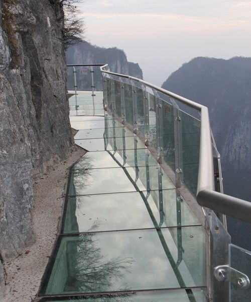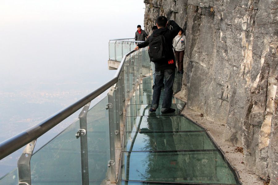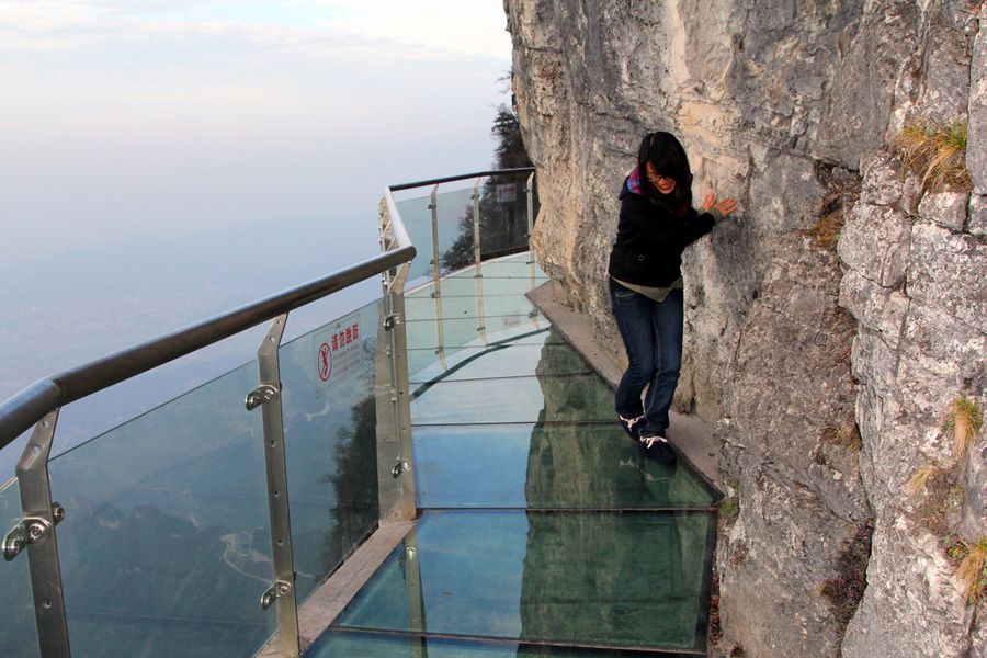 ガラス桟道は張家界天門山景区の断崖絶壁にある鬼谷桟道、ガラス展望台、峡谷を渡る木製吊り橋に続き、新しい観光ポイントになっている。