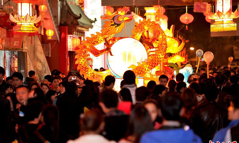 2月5日夜、福建省有名な帰国華僑泉州では さまざまな飾り灯籠が正式的現れた。今年は中国の伝統旧暦の竜年で、大型な竜の模様をテーマとして作り灯籠を飾って祝うことが多いである。