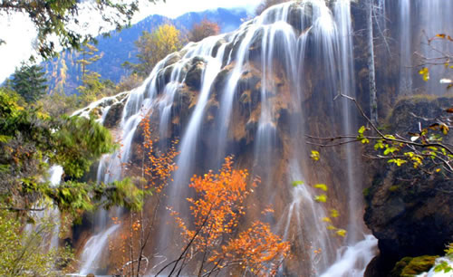 秋の気配が濃くなってきた、また九寨溝の最も美しいシーズンを迎えた。さんさんとした日光を浴びている紅葉した九寨溝はほんとうに童話の世界のようだ。繋がる山山、生い茂った森林、何重にも重なる滝、色とりどりの湖などからなる油絵のような美しい風景はロマンチックな気分に浸って、「童話の世界」で遊びにひけって帰るのを忘れる。