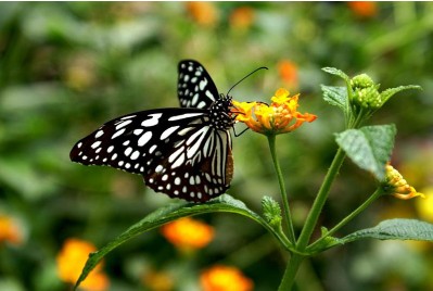 蝶園は中国最大の蝶の飼育園であり、今までのべ200種、数万匹の蝶を放し飼いしている。蝶山桟道を沿い、蝶橋を渡り、静かな石林の中の曲がりくねった山道を抜き、蝶山の中腹に上がると、陽朔のシンボルと称される羊角山、小漓江の美称を持つ遇竜河などの田園風光が一望できる。蝶洞の入り口に大きな帝王蝶が刻まれてあり、高さは2.8メートル、幅は2メートルもある。当代著名な詩人賀敬之氏の直筆した「天下一の蝶」はきわめて目立っている。