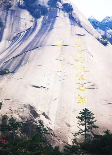 黄山には現存の歴代の摩崖石刻は300箇所余りあり、主に温泉、玉屏、北海、雲谷と松谷など各観光スポットと石畳道の岩石の壁に分布されています。唐の時代の詩人李白の「鳴弦泉」と「洗杯泉」を記載する彫刻は一番年代が古いです。民国時代の「立馬空東海、登高望太平」が一番彫刻の面積が大きく、一つの文字の直径は6メートルもあり、「平」という字の縦棒は9.4メートルもあります。それぞれの字も上手く、篆書、隶書、真書、草書の書体も揃えています。黄山摩崖石刻は自然風景と調和する文化長廊であり、一部花崗岩に彫刻した黄山の「史記」であり、一つ精華が集まる中国書法博覧館でもあります。それらは「神、奇、険、秀」の黄山により神秘さと歴史体験を与え、「黄山文化」の中心の物となっています。