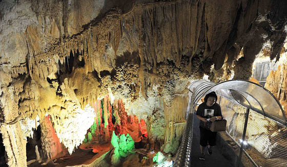2012年09月10日9月7日、多くの観光客は広西河池市巴馬ヤオ族自治県の鍾乳洞を見学した。洞窟内の珍しい鍾乳石は皆に感心させた。この鍾乳洞は地元の人に「水晶宮」と呼ばれている。専門家の紹介によると、この鍾乳洞は今からおよそ6000万年前に形成して、洞窟内の鍾乳石は少なくとも40万年ぐらい前に形成したそうだ。