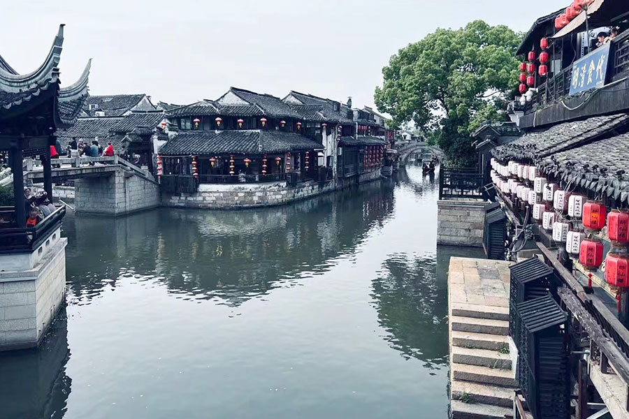 西塘鎮は上海市と浙江省の境に位置している、ほかの水郷古鎮が大規模な観光開発されているのに対して、ここは昔ながらの状態を残っている。最も特色あるのが川沿いの道は全部屋根があり、日照強いときでも雨のときでも端から端までゆっくりと散策できる。100年前の面影を色濃く残す水郷を歩いていると、はじめて来たのにとても懐かしい感じがしてくる。ホテルもあるので宿泊してみれば、特別な江南体験になる。