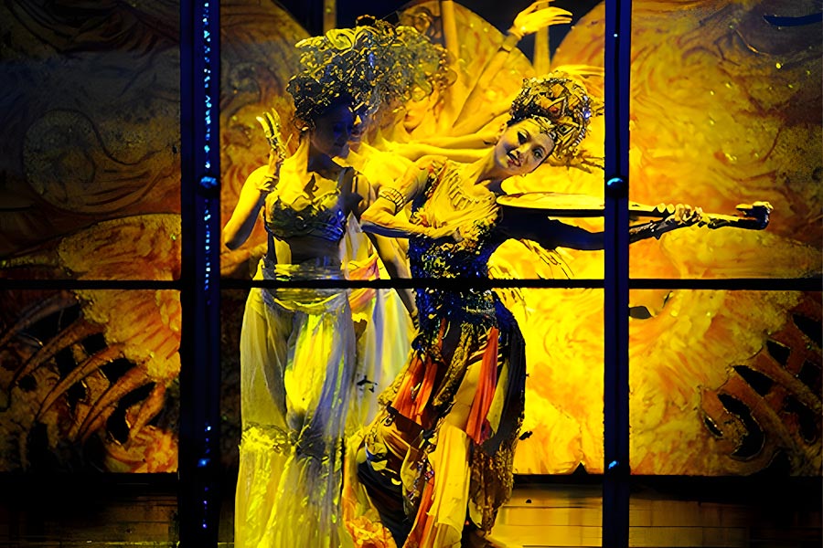 この舞台のオリジナルは上海歌舞団による「金舞銀飾」で、1987年以来世界十数ヶ国で公演されてきたもの。2002年にパリで上海万博の申請を行う際にも公演された。 約1時間のショーで、約1,200種類もの衣装が登場する。