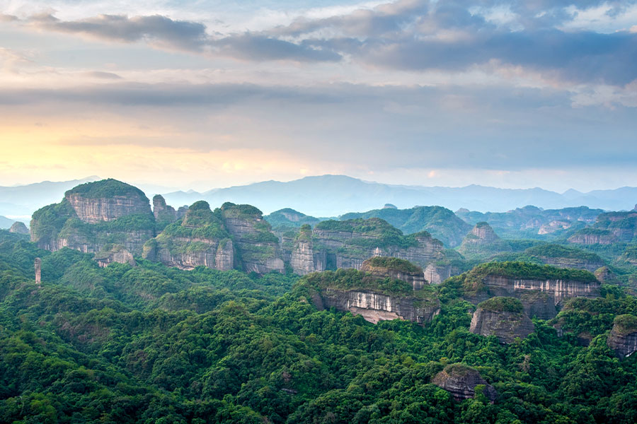丹霞山は広東省韶関市仁化県に位置しています。総面積はおよそ292平方キロメートルで、広東省にて面積の一番大きい風景区です。丹霞山は丹霞の地形景観を主とする景勝地と世界自然遺産地です。世界の「丹霞の地形」の命名地で、中国紅石公園と呼ばれています。
