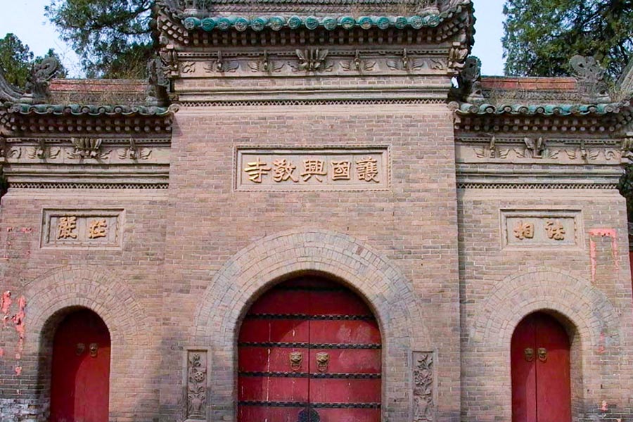 興教寺は唐代樊川八大寺院の一つで、西安から南に約20kmの長安県杜曲鎮小忍陵原畔に位置している。664年に唐代の翻訳者?旅行者として有名な高僧玄奘法師が亡くなった時には白鹿原に埋葬され、669年に樊川風栖原に改葬された。そこに5階建ての霊塔、翌年にはお寺が建てられ、唐粛宗が「興教」を書き記したことから興教寺と名づけられた 興教寺塔は玄奘霊塔とも呼ばれ、両側には陪葬した弟子?窺基と円測の霊塔がある。玄奘霊塔は四角塔の5階建て、高さ21m、底の周囲は5.2m。1階は割と高く、南に龕室があり中に玄奘の塑像が置かれている。塔の造りは荘重で典型的な早期楼閣様式の建築である。窺基と円測の霊塔は四角...