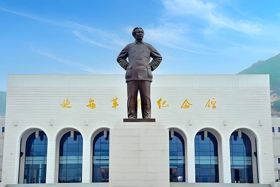この記念館の前には大型の広場があり、広場の中心に毛沢東の銅像が立っています。この銅像は有名な塑像作家・程允賢より設計され、高さ5m、重さ約3tで、「毛沢東在延安」という6文字が刻まれています。1997年1月13日に毛沢東の延安駐在60周年記念として落成されました。1996年に延安革命記念館は全国愛国主義の教育基地に指定されています。