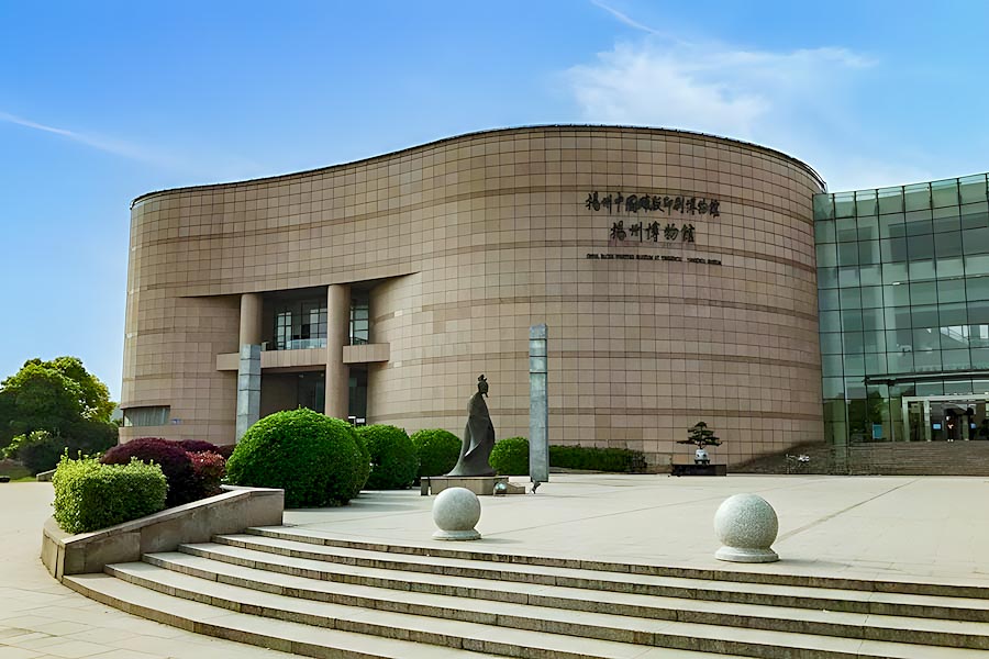 揚州双博館と揚州中国雕版印刷博物館を併設してリニューアルしたもの。敷地は5万㎡に及び、建物はユニークな曲線を採用した現代的なもの。博物館は三つのフロアに分かれており、「揚州八怪」についての展示、中国の雕版印刷や明清時代の書画、揚州に関わる文物の展示がある。展示物は春秋戦国時代から清代に及ぶが、有名なものとしては踊る美女を描いた唐代の彩色陶器や中国で最古の遺書とされる西漢時代の竹簡などがある。