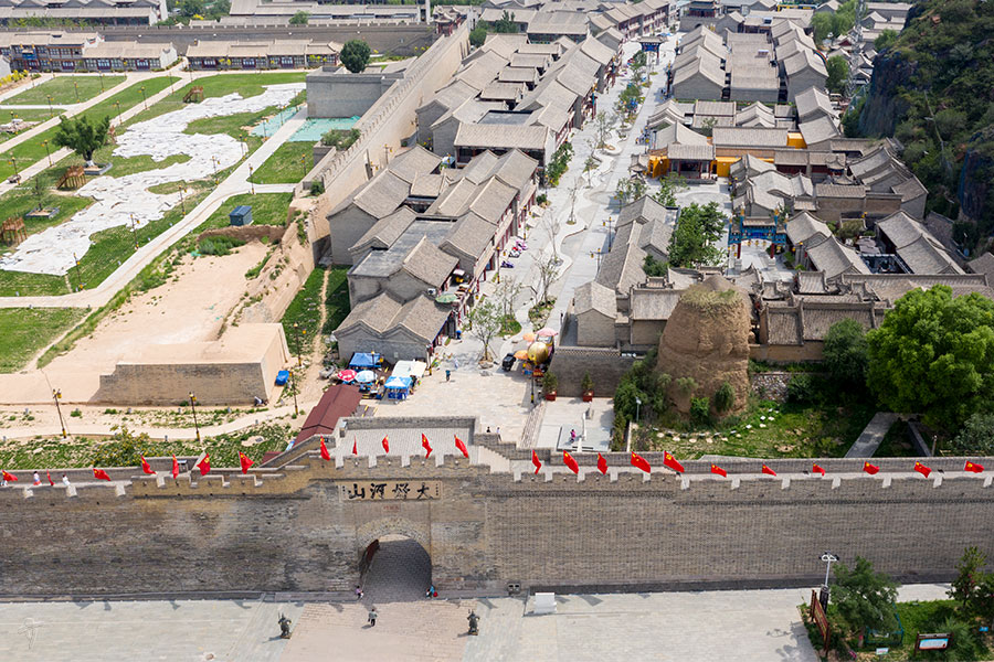 大境門は、市街地の北側を東西に延びる太平山に沿って万里の長城が清水河と交差するあたりに位置する関所で、遊牧民族の華北侵入を防ぐ拠点として、1485年(明の成化21年)に築かれたもの。現在はここから長城に上り、散策できる。