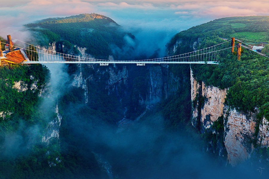 10:00-12:30 世界一の高さを誇る「ガラスの吊り橋」を見物。大峡谷エレベーターにて下山、「大峡谷」散策をお楽しみ下さい。